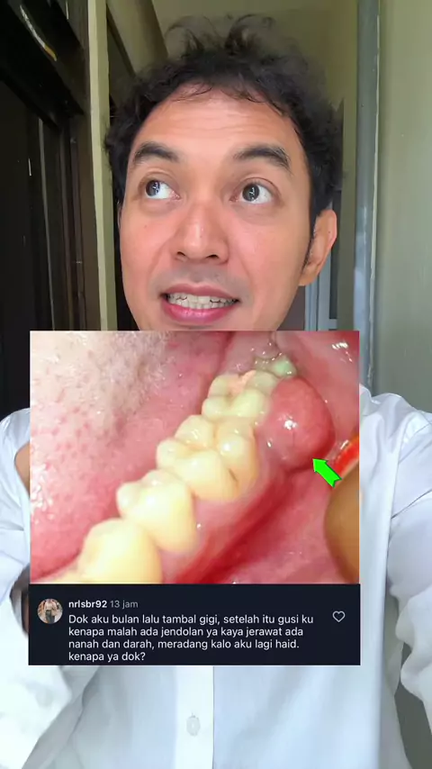 Sudah tambal gigi tapi malah muncul benjolan yang isinya nanah dan darah ? biasanya disebut dengan abses gigi atau benjolan yang berisi nanah yang disebabkan karena adanya infeksi bakteri setelah tambal gigi. Yang sebaiknya dilakukan adalah : 1. Jangan memencet atau mengeluarkan sendiri nanahnya karena ini bisa memperparah infeksi. 2. Kumur dengan air garam hangat 2–3x sehari untuk bantu meredakan bengkak. 3. Kalau terasa sakit, bisa minum obat pereda nyeri seperti ibuprofen/paracetamol, tapi