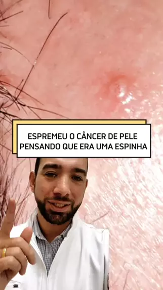 Espinha que não seca, não some e não cicatriza: pode ser câncer de pele. Este paciente pensou que era uma espinha e ficou espremendo. Ela não parava de crescer e sempre descamava. Dentre muitas lesões de pele achamos que era uma alteração benigna mas enviamos para biópsia por rotina. O resultado foi que era um câncer de pele e que ainda havia ficado uma parte por baixo da pele. Foi necessário realizar uma nova cirurgia para retirar mais pele ao redor do que havia sido feito e pronto.