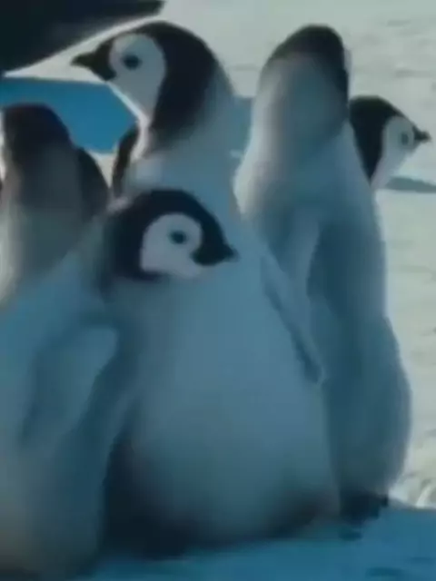 kawanan penguin berbaris merapat melindungi anak penguin yang mau dimangsa #bird #animais