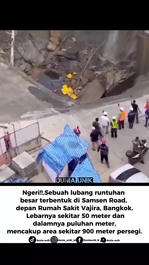 Lubang runtuhan (sinkhole) terjadi di Bangkok pada September 2025, menyebabkan gangguan dan kerusakan. " untuk informasi lebih lengkap follow media sosial, dunia unik "📌. #BeritaLokal #insiden #FAKTAMENARIK #DapatKoinMainGame
