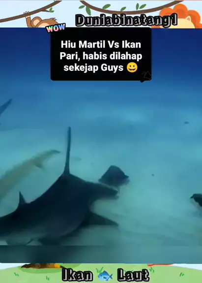 Niatnya mau Sembunyi eehh malah ketauan dech... jadi diserang buat mangsa makan siang. Hiu Martil Vs Ikan Pari. kasihan banget Pari nya..🤭 #duniahewan #duniabinatang #ikanlaut #Hiumartil #ikanpari
