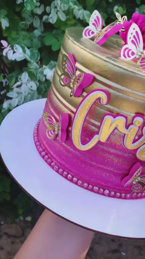 bolo rosa com dourado bolospersonalizados #chantininho #doces #bolosartisticos #instacake #chocolate