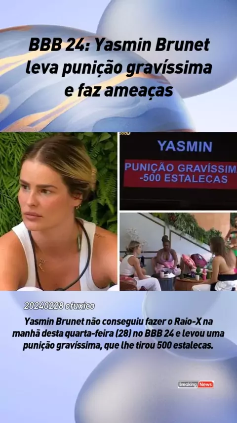 BBB 24: Yasmin Brunet leva punição gravíssima e faz ameaças
