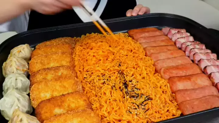 Spicy Noodles With Smoked Pork Spam Hash Brown MukBang! #asmr #asmrvideo #mukbang #bonggil #mukbangbonggil blogger challenge video page シ゚viral