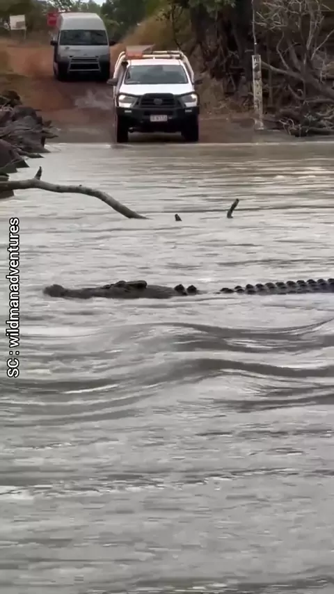 seekor buaya besar sedang melintas dijalan yang banjir#buaya#buaya🐊#buayadarat🐊#buayamuara#crocodile#predator#animals#duniahewan#sungai#viral#videoviral