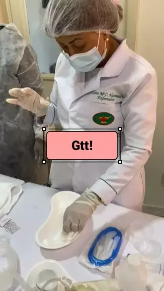 Limpeza da Gtt. Gtt é uma sonda localizada diretamente na parede abdominal, que vai direto pra o estômago do paciente, para administração de medicamentos e dietas enteral.