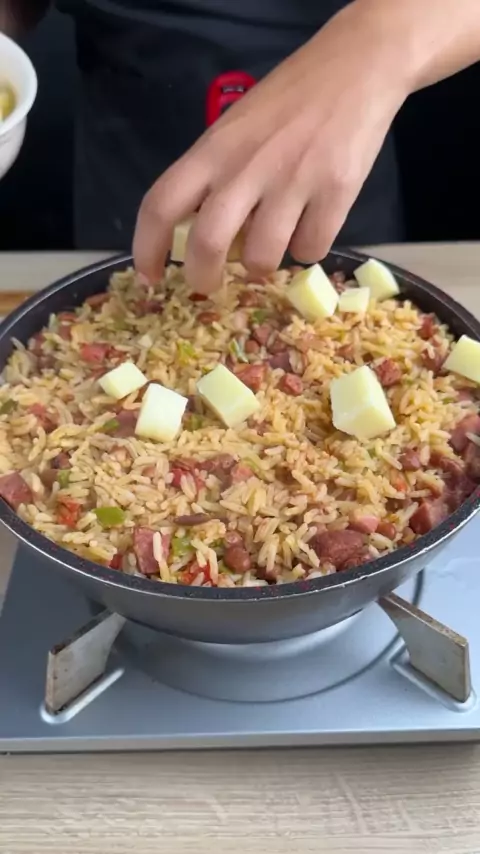 Arroz baião de dois😋 #arroz #calabresa #bacon #feijao #pimentao
