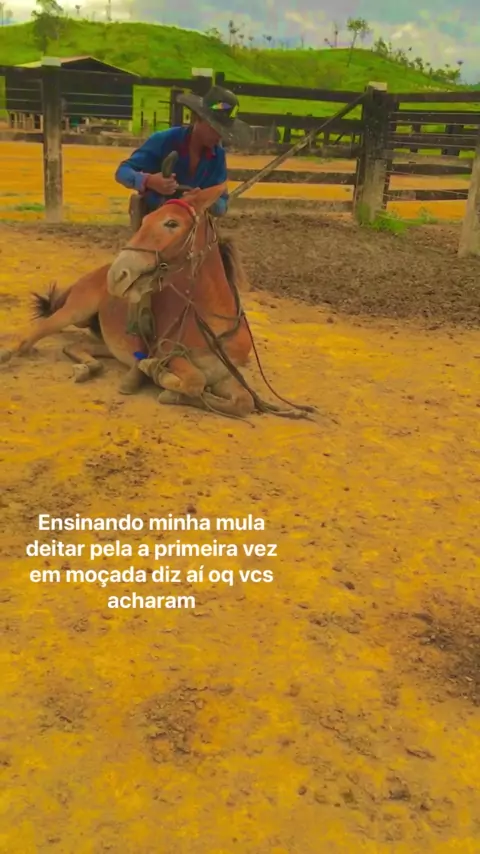 Ensinando minha mula deitar pela a primeira vez oq vcs acharam moçada comenta aí 🙏🏽✅