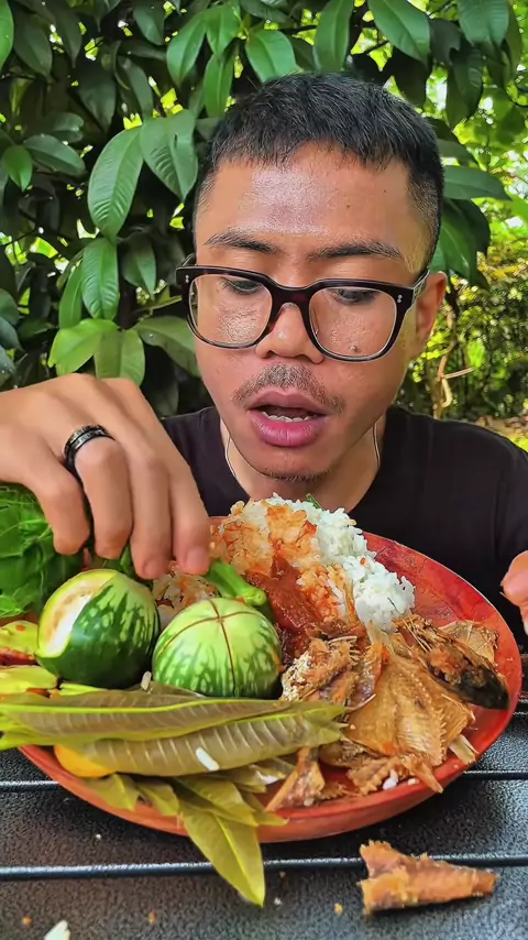 Mukbang lalapan mentah jengkol muda, batang pepaya, terong ijo, daun mangga, sambal terasi dan ikan asin. 😁#mukbang#mukbangvideo#food#food#lalapan