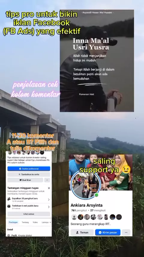 tips pro untuk bikin iklan Facebook (FB Ads) yang efektif Perbanyak Pembaca Awal Share link cerita ke media sosial (IG, TikTok, WA, dll). Ajak teman-teman baca dan beri rating/bintang 11-20 komentar A atau B? Pilih dan tulis dikomentar Fyp#Fbpro#jangkauanluas#fbreelsfypシ゚viral#creatorsearchinsights #reelsfb #fbpropemulafyp #pemulakontenkreator