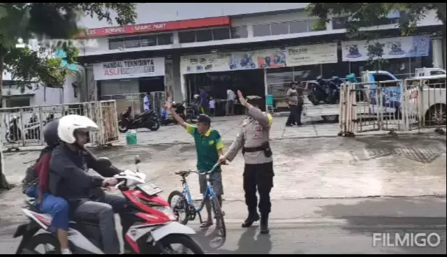 pengaturan arus lalin di depan dealer Yamaha Ambulu More