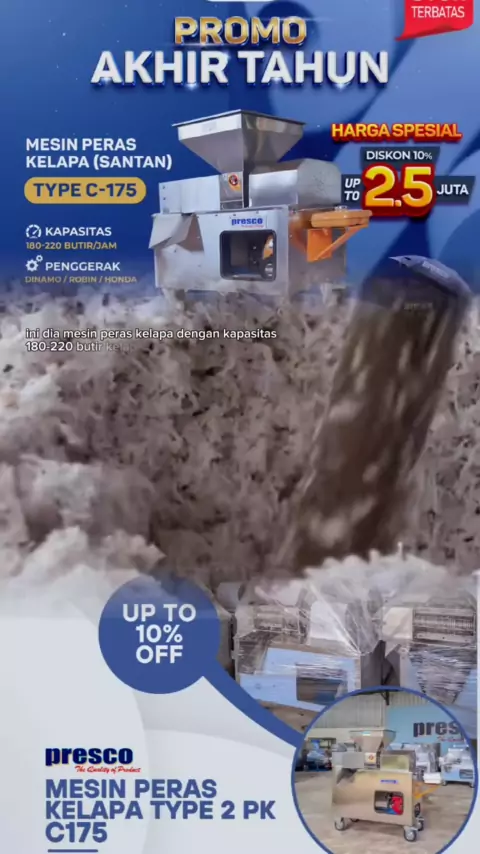 🥳PROMO AKHIR TAHUN🥳#mesinpresco#mesinperasansantan#mesinperaskelapa#mesinsantan#kelapasantan#mesinperas#santanmurniberkualitas#santan#usahaumkm#usahakelapa#kelapaindonesia#promoakhirtahun#diskon#promo#cucigudang#bantingharga