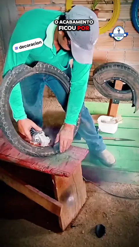 Arte criativa, feita de pneu reciclados. #maisviews #sitio #pneureciclado #ideiasincriveis #façavocemesmo