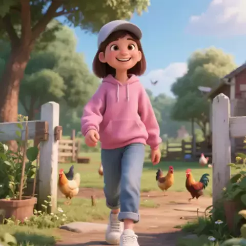 Aurora paseando no sitio da avó
