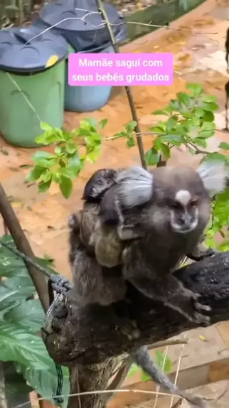 Mamãe Sagui com filhotes grudados #petsfofos #petsalegria #petsfeliz #saguis #marmosets