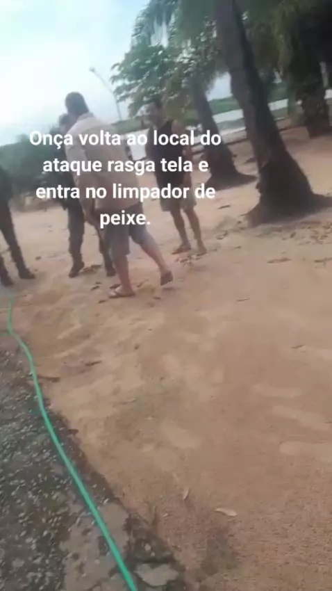 onça volta após a ataque e entra no local onde Jorginho limpava peixe.