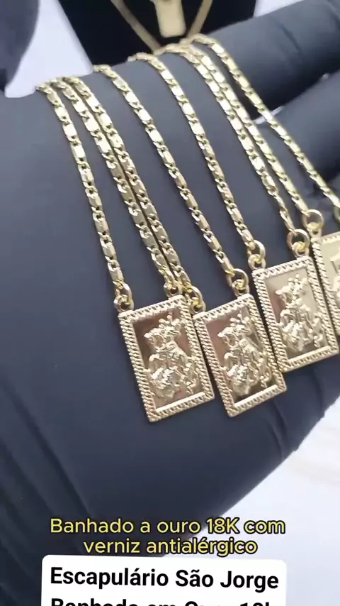 Escapulário São Jorge Banhado em Ouro 18k
