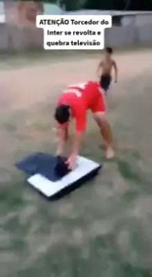 ATENÇÃO Torcedor do Inter se revolta e quebra televisão