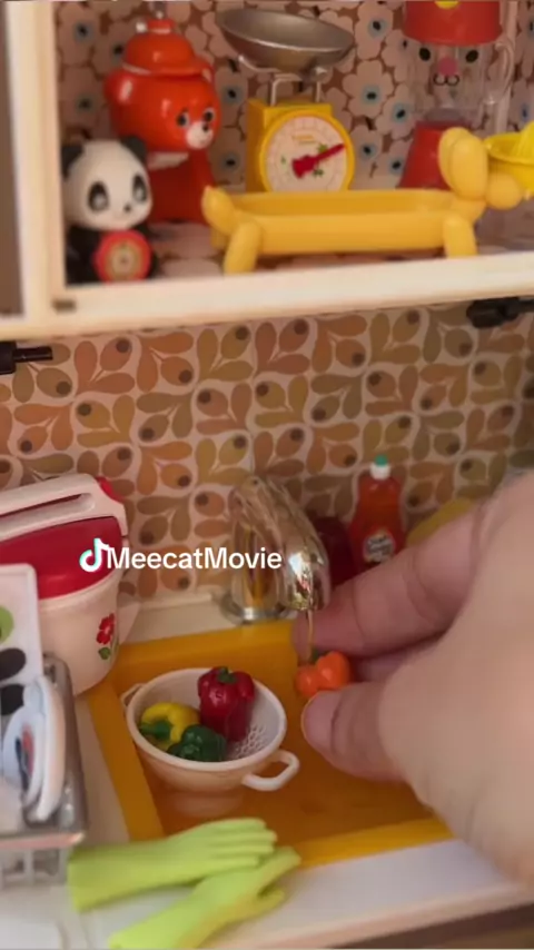 Tiny Kitchen tour - O que poderia ser mais legal do que uma pia de cozinha em miniatura funcionando? Eu não conseguia manter meus olhos longe da pequena água corrente # miniatura # minikitchen # tinykitchen # asmrsound # funcionalminiatures # toytok # childhoodmemories