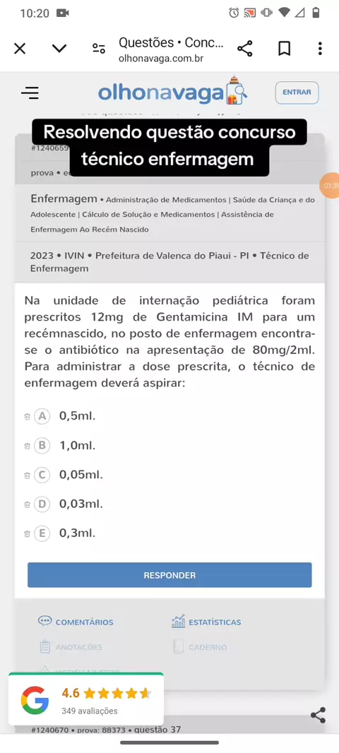 Questão concurso técnico em enfermagem. #maisviews #viraliza #enfermagem #concurso #criador