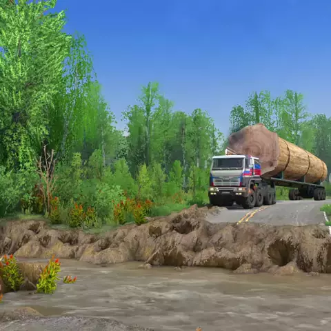 Amazing Giant Logging Truck Showdown Against Treacherous Water