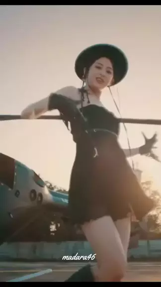 Uma sequência dinâmica se desenrola com um visual impressionante de uma mulher vestida de preto, parada confiantemente em frente a um helicoptero, seguida por uma cena dramática de uma figura com asas flamejantes iluminando a noite. O clipe transita para uma cativante apresentação de dança por um grupo de mulheres em um cenário suntuoso, apresentando uma coreografia sincronizada e enérgica que complementa a música #kpop #Performance de dança #Cina de helicopters #coreografia Sincronizaçã