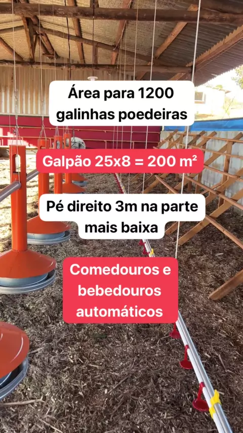 Área para 1200 galinhas poedeiras Galpão 25x8 = 200 m² Pé direito 3 metros na parte mais baixa #galinha #avicultura #galinhacaipira #aves #galinheiro