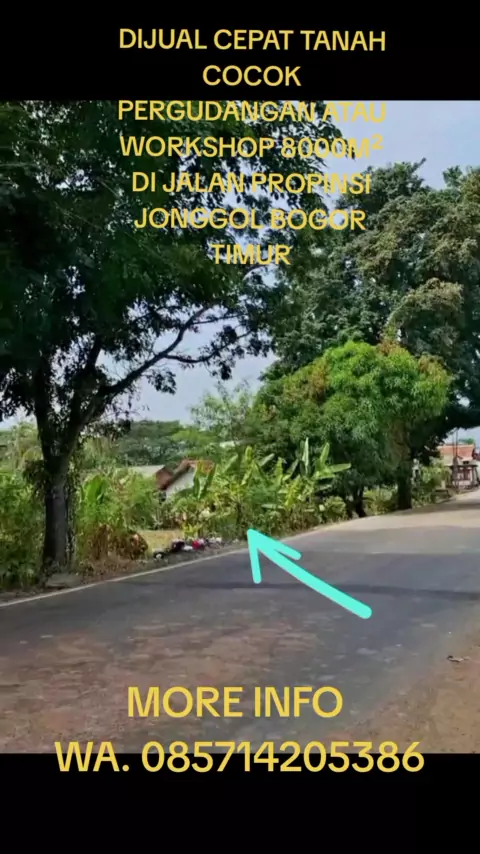 DIJUAL CEPAT TANAH COCOK PERGUDANGAN / WORKSHOP 8000M² DI JALAN PROPINSI JONGGOL BOGOR TIMUR Sangat Cocok untuk dibangun Gudang, pull truck, Workshop dll Luas 8000 m² Legalitas SHM Lebar Muka -+40 m² Harga 1 JT / mtr Lokasi nempel jalan propinsi yg menghubungkan Jakarta - Bandung Via Jonggol Alamat Cariu Kec.Cariu Bogor Timur MORE INFO WA. 085714205386 #tanahdijual #tanahmurah #fyp