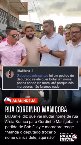 Prefeito de Ananindeua Dr. Daniel declarou que vão mudar o nome da rua Areia Branca para "Gordinho Maniçoba" em homenagem ao finado humorista a pedido do deputado Bob Fllay e moradora protesta: "Dr. Daniel foi um pedido do deputado se ele quer botar um nome ponha aonde ele mora, até porque nós moradores não falamos nada." #estadodopará #news #pará #belem #belemdopara