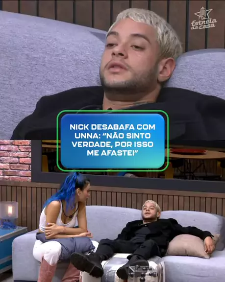 Abriu o jogo! 👀 Unna X chega para conversar com Nick Cruz na sala do #EstrelaDaCasa e comenta que está achando o cantor muito quieto. Ele, então, desabafa com a Hitmaker da semana. "Eu até curto você, assim, mas muitas das vezes eu não sinto verdade, por isso que eu me afastei. E eu sou uma pessoa que eu não consigo forçar". 💬 Veja o papo completo no link da bio! 📲