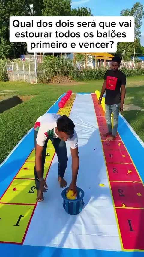 Qual dos dois será que vai estourar todos os balões primeiro e vencer? #vamosbrincar #vamosrir #brincadeiras #chalenge #Comédia