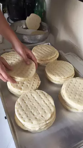 Preparando uma encomenda de massa de mini pizza