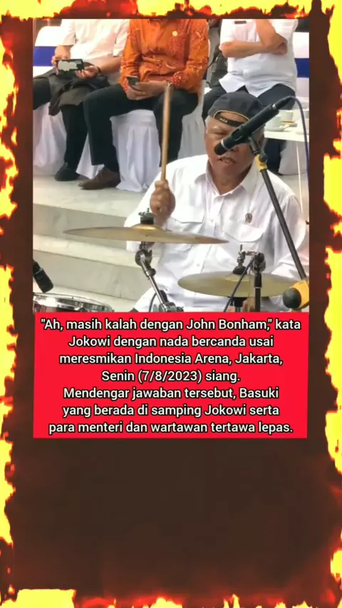 "Ah, masih kalah dengan John Bonham," kata Jokowi dengan nada bercanda.