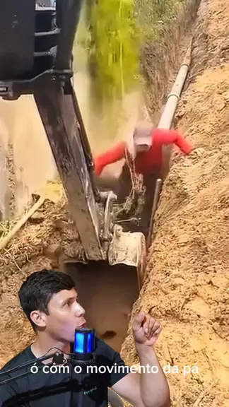 "Todo cuidado é pouco, especialmente ao se trabalhar com máquinas pesadas. O muro desabou e quase prensou o trabalhador. #wendecrispim #momentosincríveis