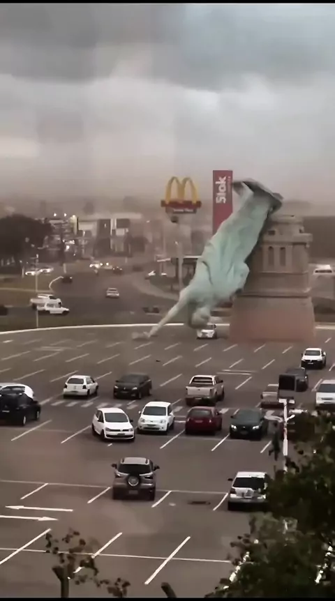 ⚠️🚨😱Vejam imagens surpreendentes da tempestade que avançou sobre o Rio grande do sul nesta tarde de segunda feira. #tempestade #havan #vento #estatua