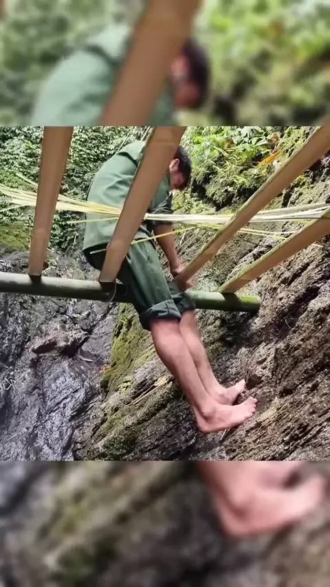 Construir uma casa de bambu na cascata #bushcraft #construir #acampamento #acampamento #sobrevivência selvagem ar livre ar livre Waterfall ing