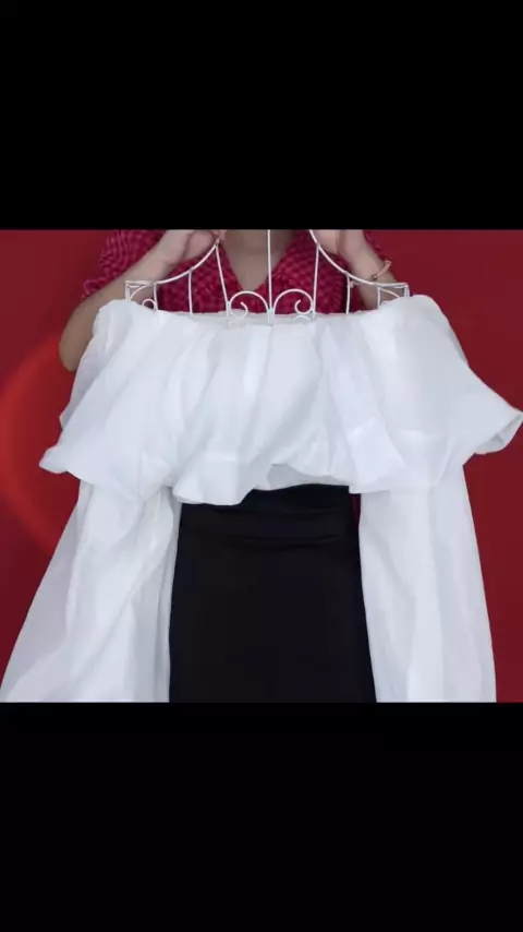 Luar biasa! Blus off-shoulder lengan lentera ini + rok ekor ikan pinggang tinggi! Mungkin terlalu tinggi untuk memakai penampilan yang murni dan sempurna. Pencuri menunjukkan wais kecil cantik perempuan orang penuh!