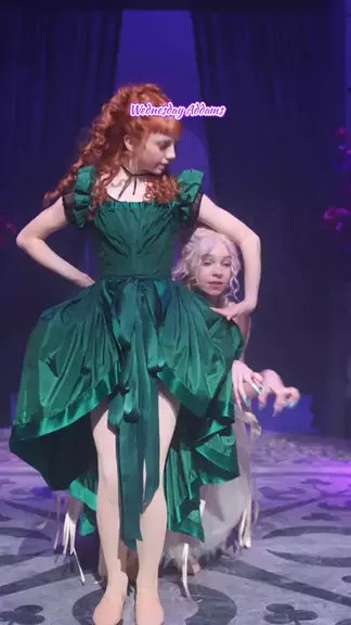 Enid e Agnes executam uma valsa hipnótica no baile de Nunca Mais: Enid distrai a multidão com graça lupina, enquanto Agnes, invisível, rouba o pingente de Coral Coríntio de Dort. Elas celebram o roubo e planejam expor o vilão. #jennaortega #wandinha #wednesdayaddams