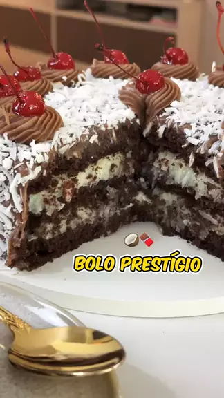 BOLO PRESTÍGIO 🥥🍫 Esse aqui é tradição na confeitaria. Sucesso por onde passa! ❤️Quem gosta da combinação chocolate com coco não abre mão dele. RECEITA ⬇️ RECHEIO COCO: 200g coco em flocos 200ml leite de coco 600g leite condensado 100g chocolate branco COBERTURA: 600g leite condensado 120g chocolate ao leite 200g creme de leite fresco CALDA: 500ml água de coco 250g leite condensado DECORAÇÃO: 13 cerejas com cabo 150g coco em flocos #boloprestigio #receitas #chocolate #bolodecoco #fy