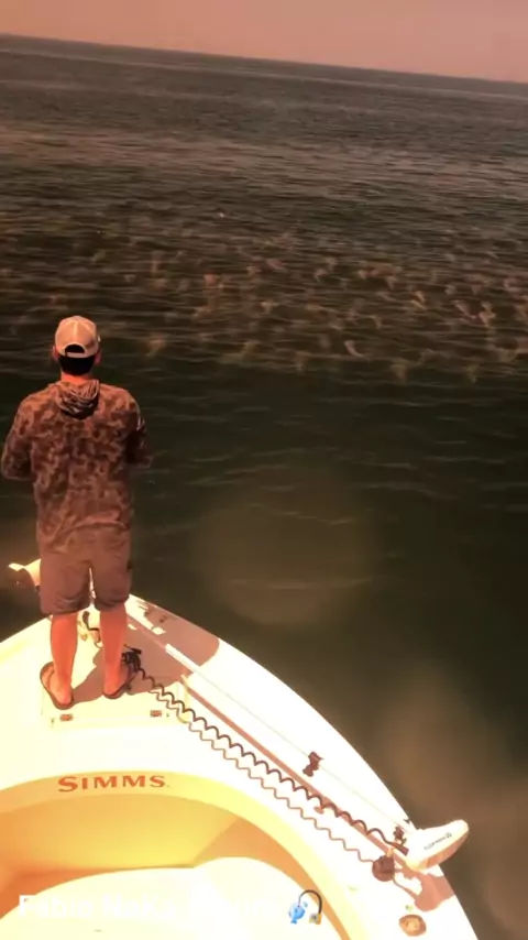 You need some serious boat skills to get this close without breaking up the party. #OhCaptainMyCaptain #QualifiedCaptain #RedFish #FishItWell 🎥: @tidewatercharters #SimmsFishing More