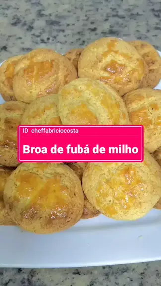 broa de fubá de milho: 2 xícaras de fubá de milho 2 xícaras de farinha de trigo 1 e 1/2 xícara de açúcar 2 ovos 4 colher (sopa) de manteiga 1 pitada de sal 1 colher (sopa) de fermento químico em pó asse a 180° por 20 minutos com o forno pré aquecido. #souchef #Receita #kwaitopcriador #cozinhacriativa #broa