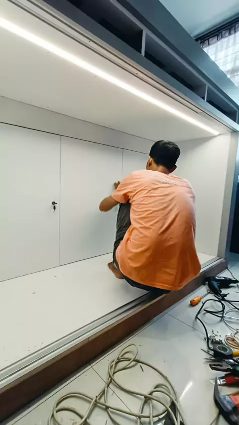 Loft bed Storage Full Kabinet Storage Uk kasur 90x200 Tinggi Total 130cm Rangka Holo Galvanis, Body Plywood, Finishing HPL#loftbed#loftbedstorage#Mezzanine#bedroomset#kamaranak#mezzaninebedroom#interiordepok#mezzanines#mezzaninedesign#loftbedroom