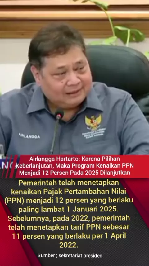 Airlangga Hartarto: Karena Pilihan Keberlanjutan, Maka Program Kenaikan PPN Menjadi 12 Persen Pada 2025 Dilanjutkan #ppn #ppnnaik #12persen #Airlangga
