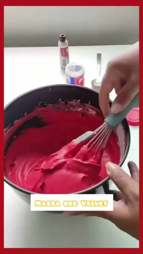 massa RED VELVET ❤️ nunca mais erre! Ingredientes: - 120g de margarina. - 280g de açúcar - 4 ovos - 10g de cacau - 300g de farinha de trigo 220ml de leite com meia banda de limão - 1/2 colher de corante vermelho - 1 colher de fermento. Modo de preparo no vídeo. Gostou? Comenta aqui! #boloredvelvet #Receita #bolo #kwai