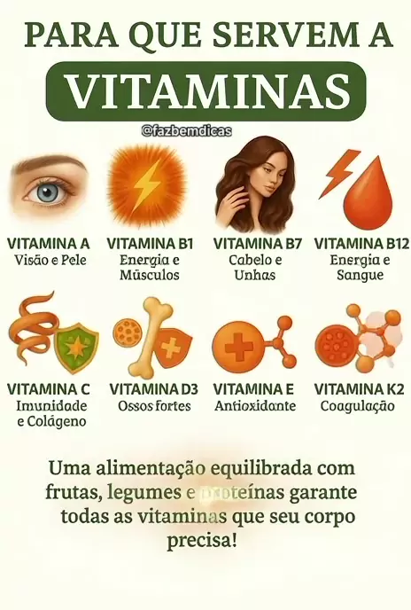 Você sabe para que serve algumas vitaminas? #vitaminas #Saúde #BemEstar