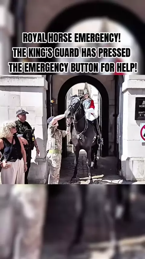 Emergência do cavalo real! A guarda do rei apertou o botão de emergência para pedir ajuda! # kingsguard # kingshorse # royalfamily # royalguard # horseguardsparade # royalhorse