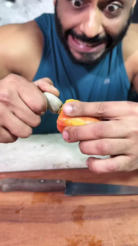 🥭 What’s the name of this fruit in your country? #fruit #curiosity #worldfood #sciencefun #felipegandin
