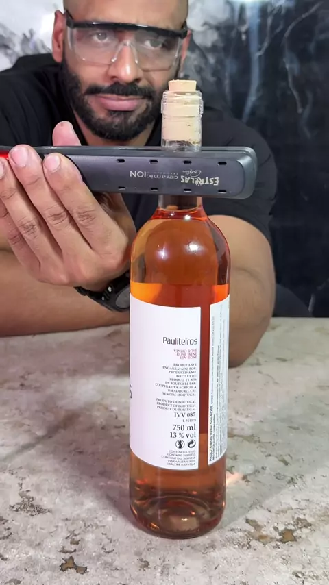 I tried opening a wine bottle with a hair straightener — does it work? #LifeHackTest #WineHack #ScienceTrick #BottleExperiment #CuriousTest
