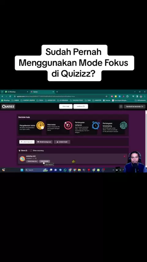Ternyata @Quizizz juga punya fitur keren yang memungkinkan guru bisa memantau langsung siswa selama mengerjakan asesmen di Quizizz. Sudah lengkap dengan laporan nya juga loh. Jika anda belum punya akun school and distrik nya silahkan hubungi saya di s.id/admin-quizizz #quizizz #quizizzindonesia #modefokus