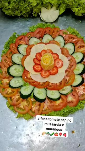 salada de alface vom tomate pepino mussarela e morangos